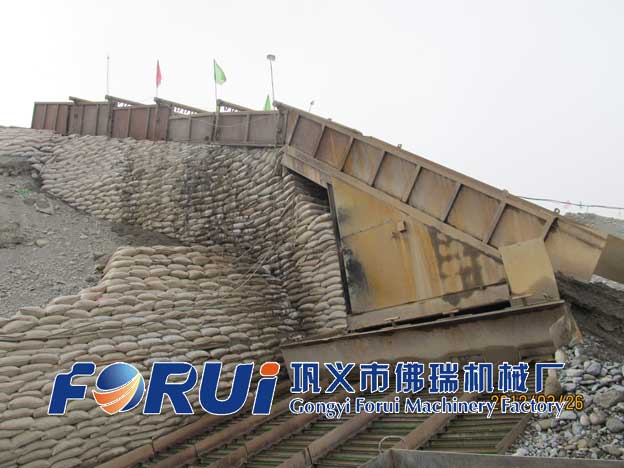 砂金選礦溜篩的作用主要是通過簡單高效的篩分方法把砂金礦中的大塊廢石,鵝卵石等不含金的廢石預(yù)先拋棄,提高整個選礦流程的處理量和有效工作率。砂金選礦溜篩通常由圓鋼焊接而成,與地面有特殊的角度,溜篩上方還要布置大量的沖洗水管,沖洗水管的作用就是通過洗礦將泥土粘結(jié)成塊的物料碎解,避免因金粒被包裹在泥團中而流失。